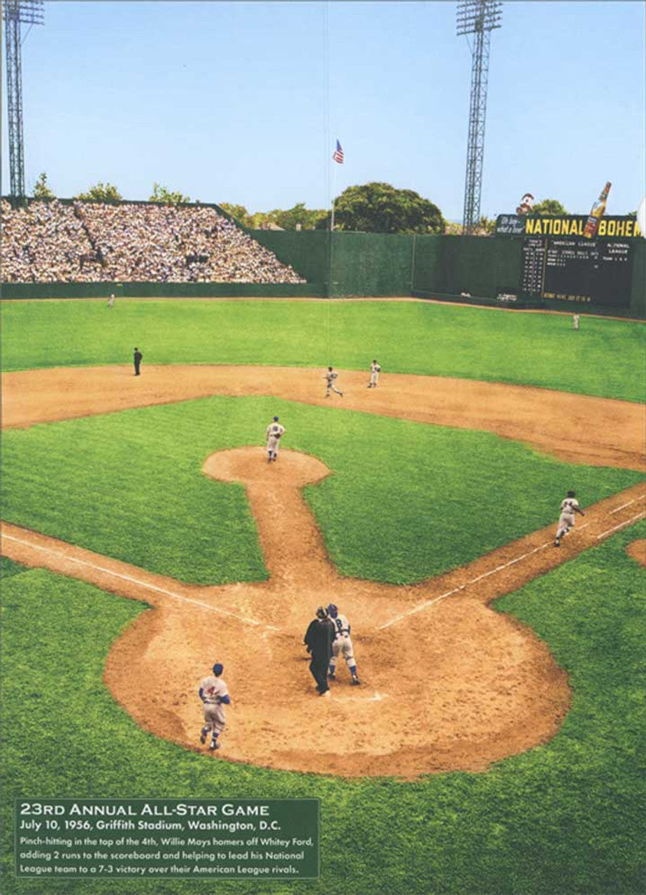 Time to change the number! HAPPY BIRTHDAY - 23rd Annual All-Star Game - July 10, 1956, Griffith Stadium, Washington, D.C. - Pinch hitting in the top of the 4th, Willie Mays homers off Whitey Ford, adding 2 runs to the scoreboard and helping to lead his National League team to a 7-3 victory over their American League rivals. |